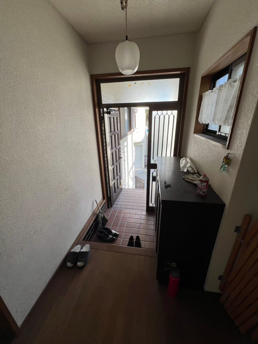 外観は現在トレンドのシックのカラーに塗装し、玄関ドアの交換と玄関部分の軒は木目調のアクセントを施しました。