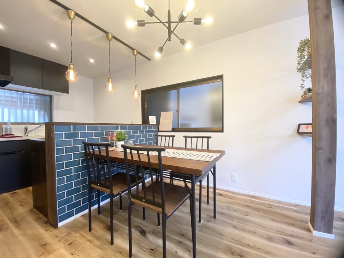 ダイニングキッチン7.5帖と洋室6帖を繋ぎ合わせ、広々リビング13.5帖に間取り変更をしました。家族の憩いの場である空間を広々お洒落な空間に仕上げております。