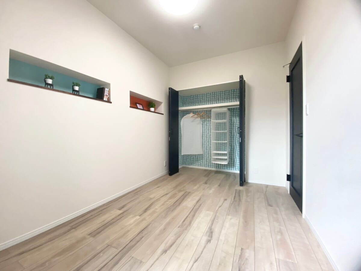 中部屋の4.5帖のお部屋は少しでも明かりが入るように室内窓を採用。