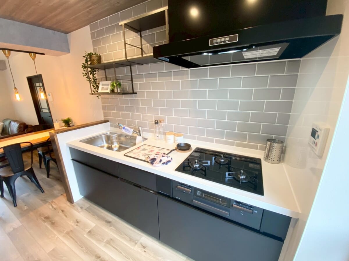 トレンドである、お洒落な室内窓や室内タイル、マリンランプなどを使用し、友人を招きたくなるリビング空間に仕上がりました。
