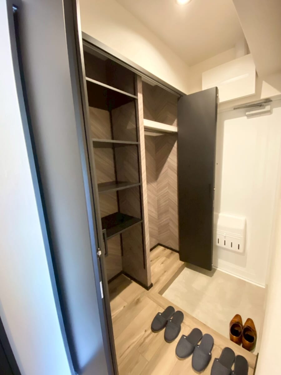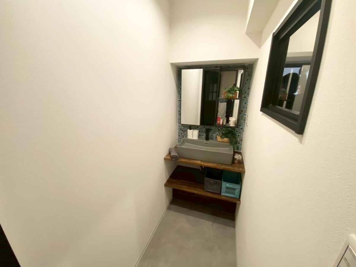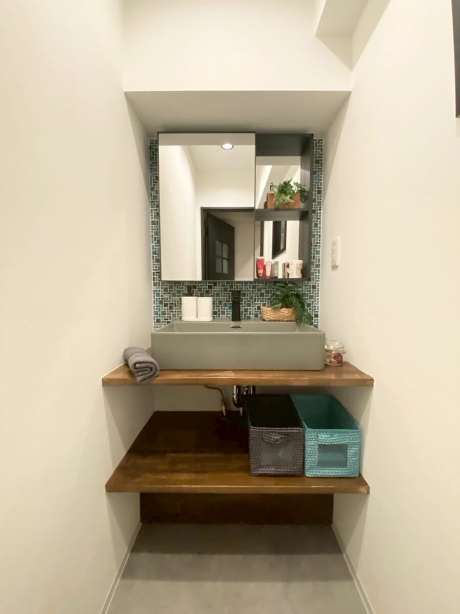 当初の洗面所の広さがあまりなく、小さめの洗面台しか設置することが出来なかったため、思い切って独立した洗面室を別で施工しました。その分、洗面所はゆったり収納スペースへ変身。
