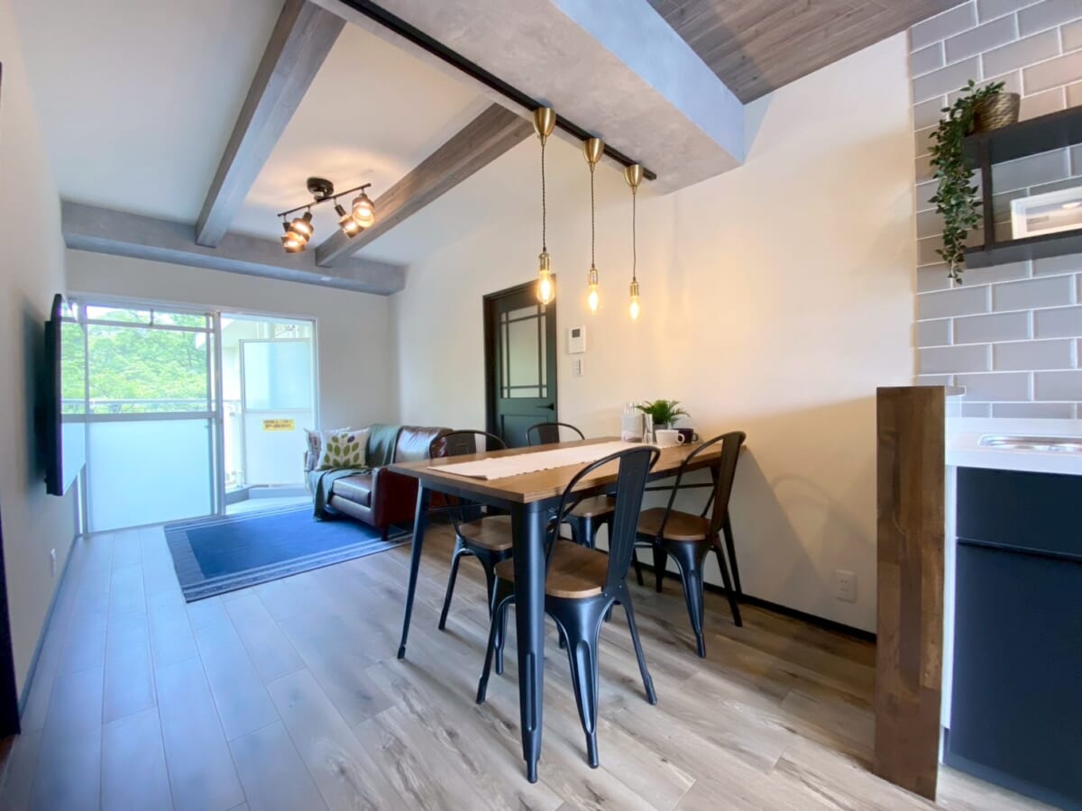 築年数の経過しているマンションに多くみられる梁の部分を上手く利用し、アクセントとして際立たせてみました。 -