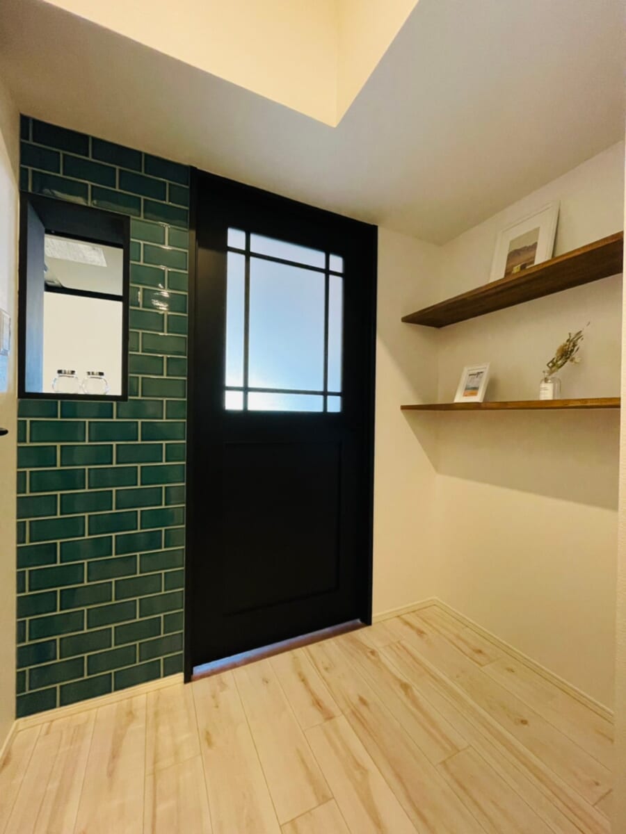 リビング扉横にFIX窓(おかえり窓)を設置することにより、実用性とデザイン性を兼ね備えております。