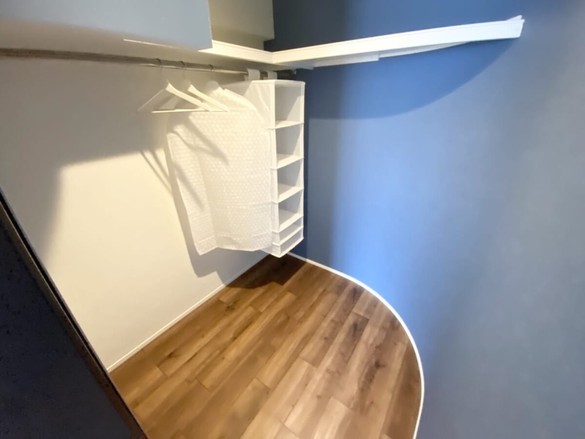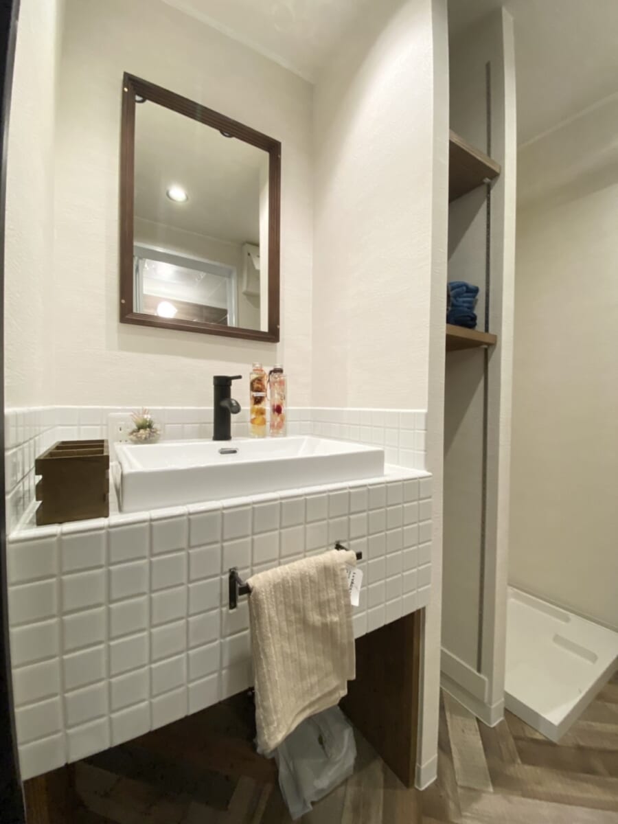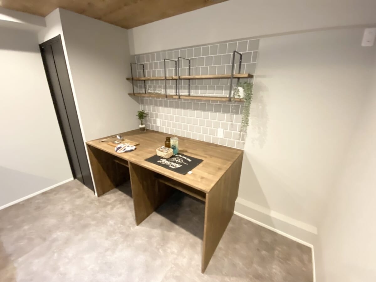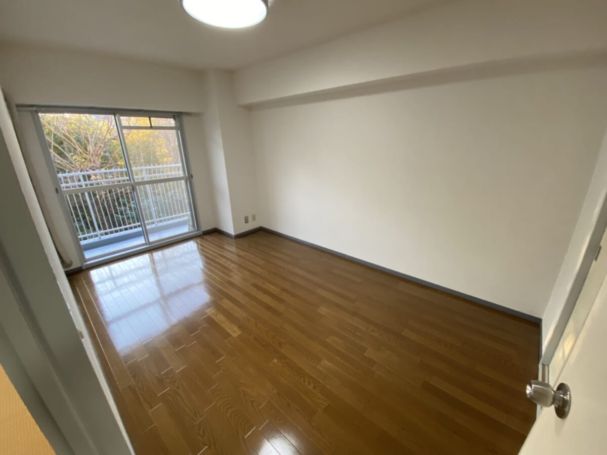 3LDKの間取りを2LDKへ改装しました。リビングのゆとりと収納を増やすことで家事導線に優れた使い勝手の良い間取りへと変更。緑豊かな緑地公園の雰囲気を活かしつつ、お洒落なカフェテイストに仕上げた内装は友人を招きたくなるような空間です。