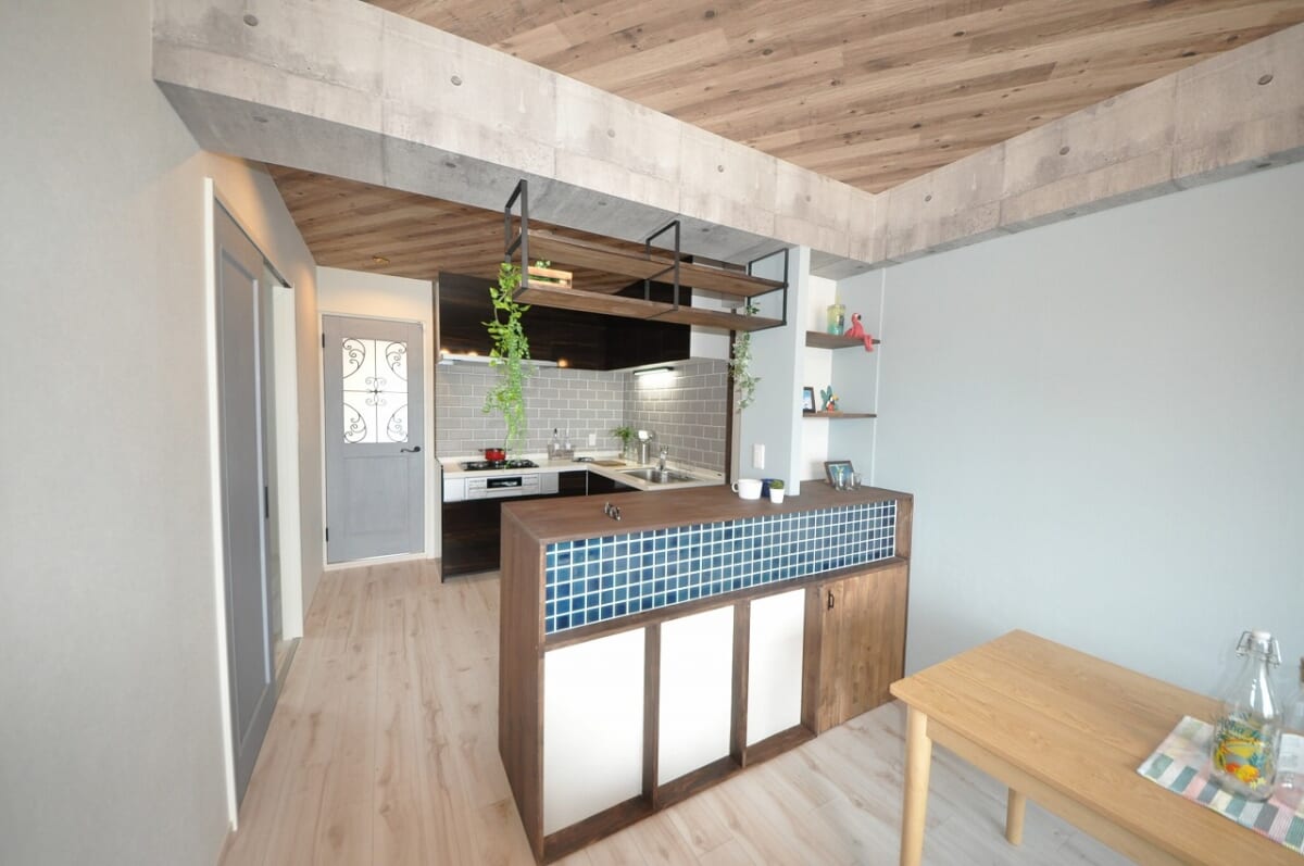 キッチンカウンターを新設し、リビングとキッチンにめりはりと収納力をもたせました。
