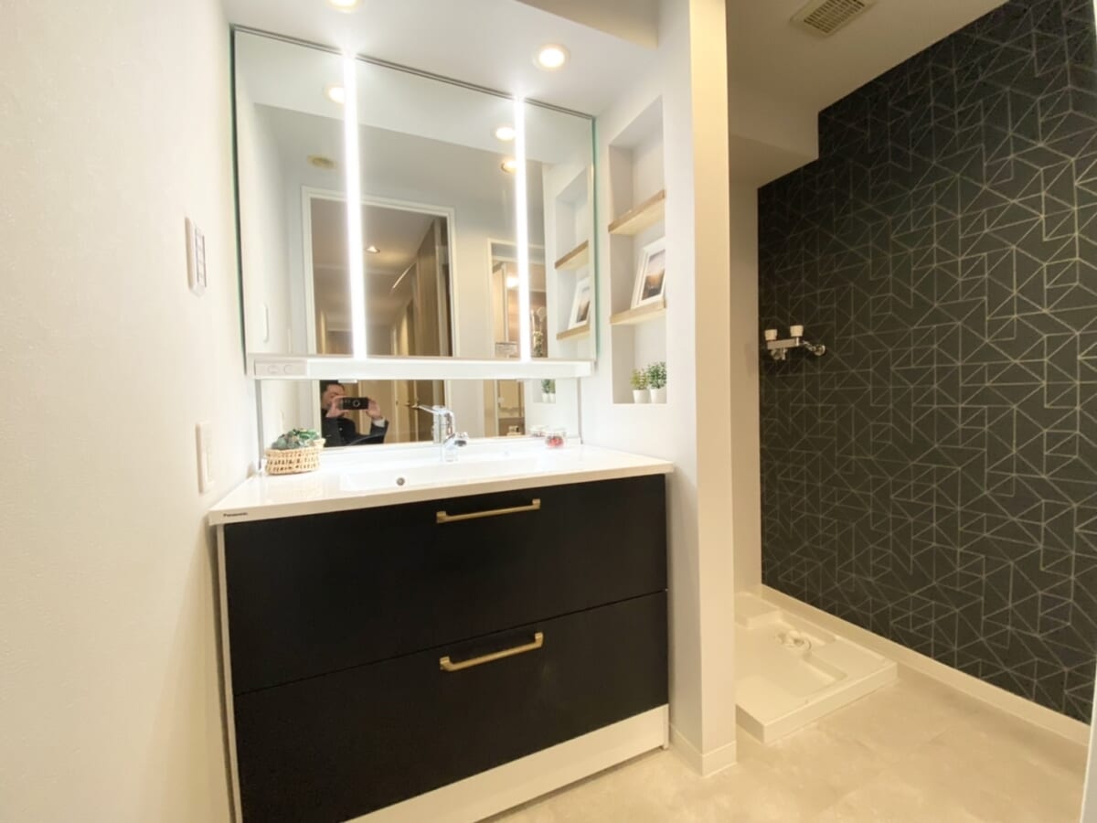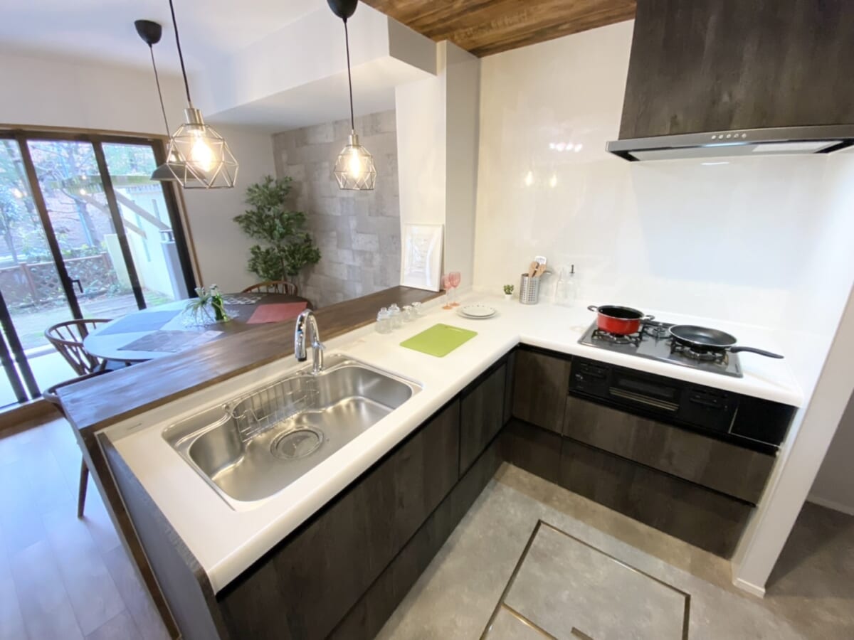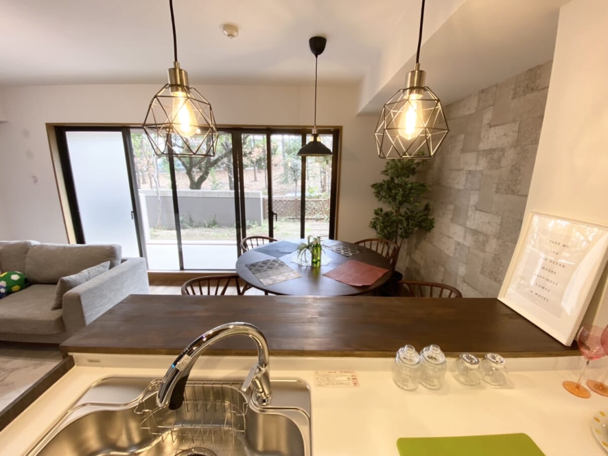 今回は大阪の北摂エリアとうい立地をイメージし、落ち着いたモダン風の内装に仕上げました。リビング部分にはエコカラットを使用し機能性と高級感を演出。和室スペースにもこだわり、落ち着いた雰囲気の中にもお洒落さを追求致しました。1階部分の特権である専用庭ではお子様を遊ばせたり、ガーデニングを楽しめたりと用途に合わせてご利用頂けます。